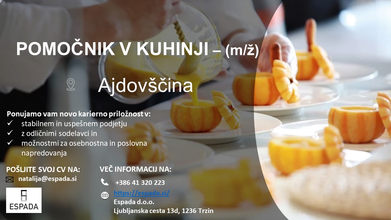 Svojo prijavo in življenjepis pošljite čimprej na elektronski naslov: natalija@espada.si